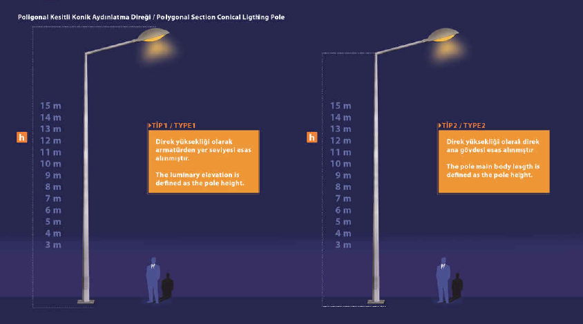 1) AYDINLATMA DİREKLERİ / LIGHTING POLES ( OCTAGONAL & CONICAL )